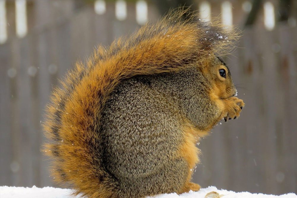 Squirrels have a long evolutionary history, with fossils dating back to the Eocene Epoch, 47 to 33 million years ago, when forests blanketed the Earth. Today, North America is home to a variety of squirrel species, including the Fox Squirrel, the largest tree squirrel on the continent. Measuring 18 to 29 inches long, with a tail length of 8 to 13 inches, Fox Squirrels weigh between 1.1 and 2.2 pounds. These squirrels exhibit a wide range of colors, typically brown-gray to brown-yellow, with a brownish-orange underside, though some populations feature striking variations such as all-white squirrels (not albino) found in Marysville, Kansas. Fox Squirrels shed their fur twice a year, once in summer and again in fall, to adapt to changing temperatures.